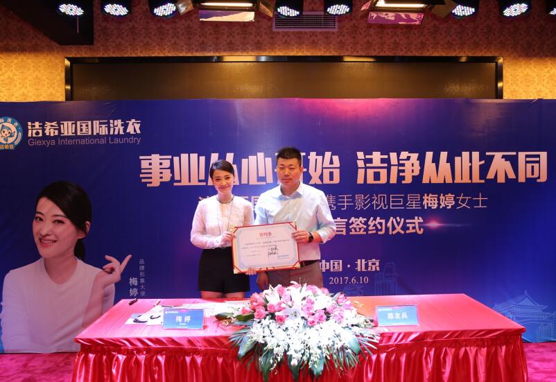 2017年6月10日,對于潔希亞國際洗衣來說,注定是一個載入史冊的日子,潔希亞國際洗衣攜手影視巨星梅婷女士品牌簽約儀式在這個日子里圓滿落下帷幕,從此,潔希亞國際洗衣擁有了自己的品牌形象大使。